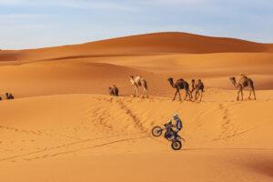 Passage en wheeling devant une caravane de dromadaire pour Xavier de Soultrait